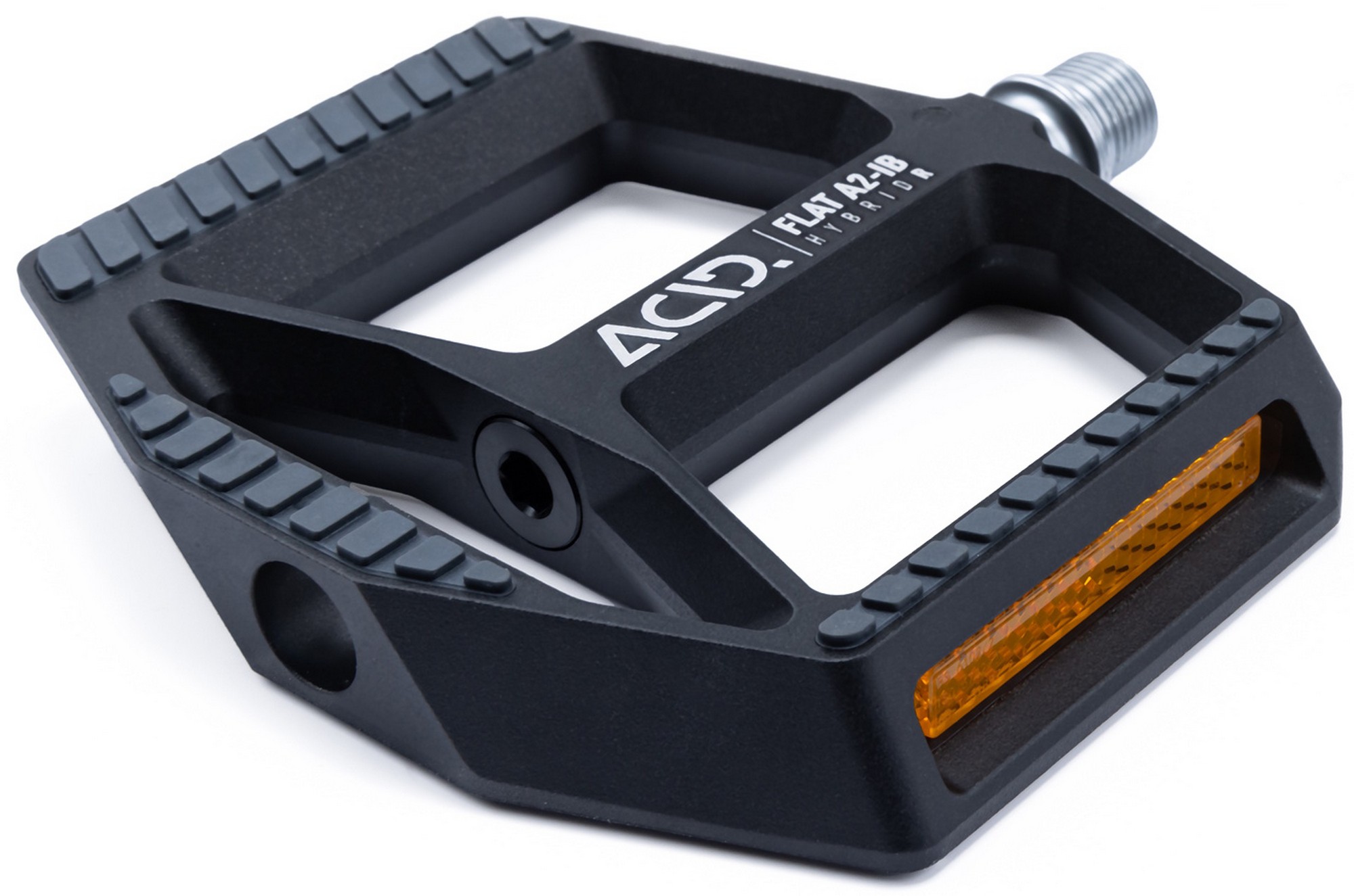 Love the grippy feel of your flat pedals but hate the painful shin scrapes when you slip off? Not your problem any more with the ACID FLAT A2-IB Hybrid R pedals! The soft plastic keeps your feet firmly in place and helps prevent those ugly badges of honour.