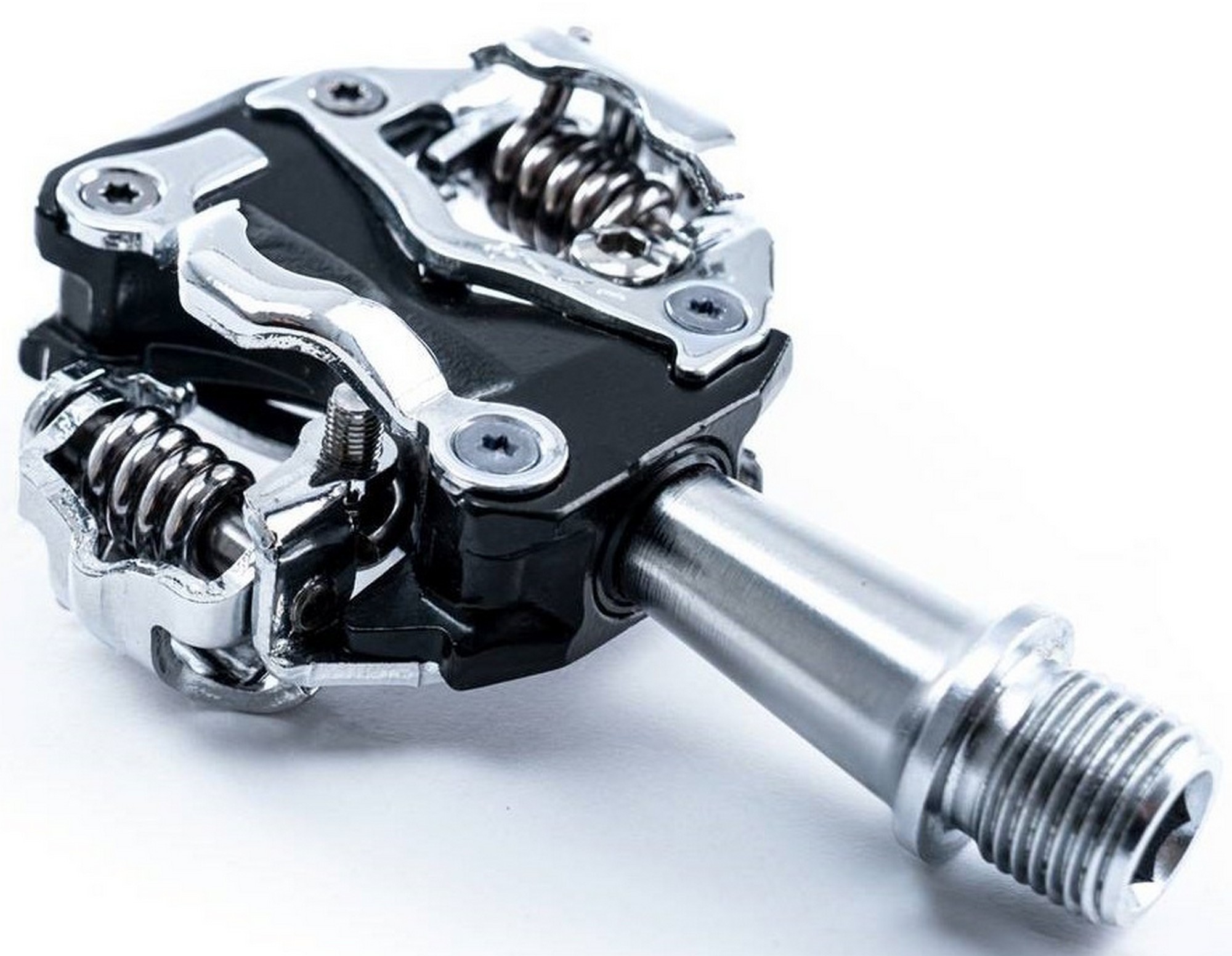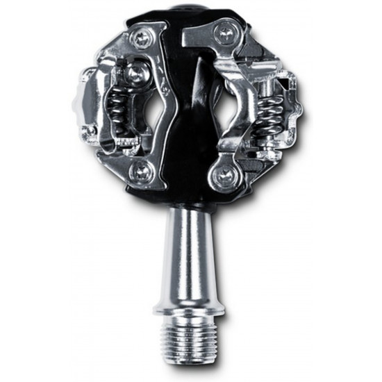 High-end forged clipless pedal with double-sided clip system, CNC-machined Cr-Mo axle and LSL bushing. SPD compatible.