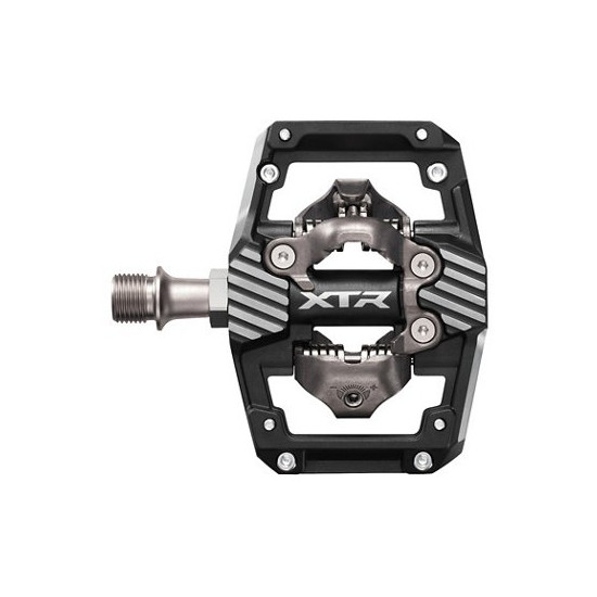 Ultimate power transfer paired with legendary reliability in an evolutionary trail pedal, the result of 20 years of experience in SPD pedal design. This new Shimano XTR PD-M9220 Trail SPD pedal is ideal for tackling singletrack and ultra-technical descents with control and confidence.