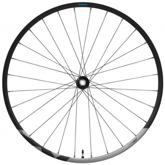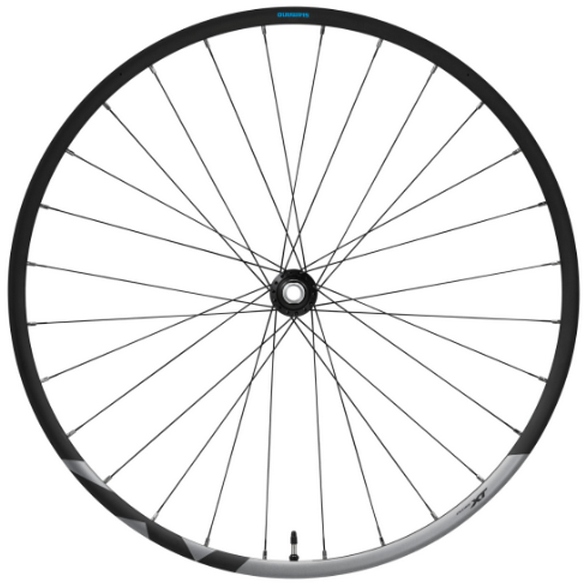 SHIMANO DEORE XT - Trail - Tubeless - 110x15 mm Thru Axle - CENTER LOCK - Front Wheel. SHIMANO DEORE XT wheels bring robust performance to any trail. The aluminum tubeless rims are offset for balanced spoke tension. Double butted, straight-pull spokes are laced to CENTER LOCK hubs with reliable, smooth-rolling labyrinth seal hubs.
