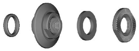 Kartio, aluslevyt ja mutteri Shimano HB-M435/495 left hand