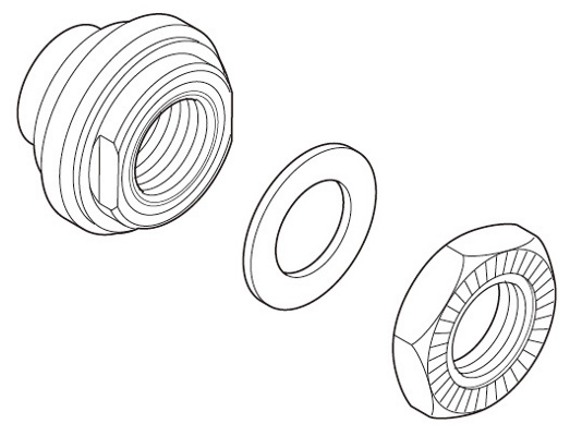 Kartio, aluslevyt ja mutteri Shimano WH-R501-R right hand