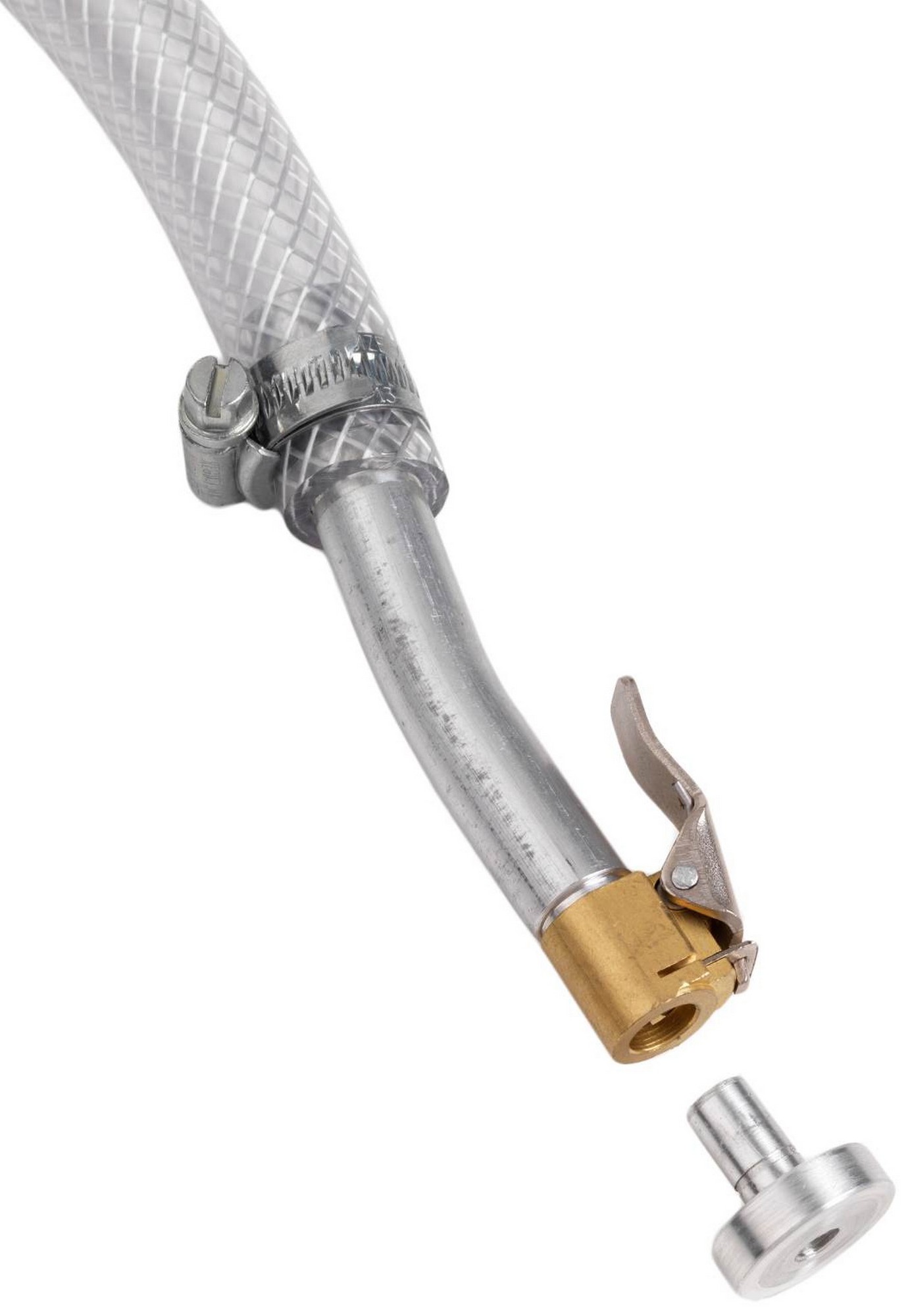 This is a special calibrated application drum pump which easily fits on to the threaded opening of our OKO Puncture Free Bike or OKO X-Treme 25 litre tire sealant drums. The single handed pump has and adjustable collar to limit the length of the downward stroke, and markings on the aluminium shaft measure the required stroke to dispense 80ml, 100ml, 120 ml, 140ml, 160ml or 180ml of sealant. This covers all bicycle tire size requirements. There is a removable valve attachment to allow application to (removable-core) Presta valve stems.The normal nozzle clamps on to a Schrader valve core.