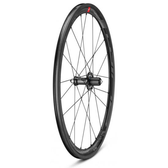 Allround as the leitmotiv, performance as an ideal definition for Wind 40C: a set of racing wheels designed for everyday rides, on all roads, whether for training or a Gran Fondo with the group you usually go out with. Its 40 mm full carbon unidirectional profile will be able to prove itself, providing what is needed: aerodynamic and stable in long stretches on the flat, light and agile in making the rhythm uphill, decisive and manageable in the most technical descents. The balance and harmony between your racing bike and Wind 40C will be immediate: you put them on and begin to discover a new level of performance. To achieve this objective, our R&D department combined several of the most popular technologies available: the full carbon, unidirectional rim is built without holes for passage of the nipples, Mo-Mag therefore, ensuring maximum stiffness and reliability. It promises braking like never before thanks to the AC3 laser treatment on the braking track: laser processing allows the traces of resin to be eliminated from the surface in contact with the pads with a precision never seen before, improving behaviour in all conditions and up to 30% in the most complicated situations, in the rain. To transfer all the power in acceleration there is the oversize flange on the cogset side, with aero spokes arranged according to the Two-to-one scheme. that's Wind 40: technology, performance and substance, but in the end it will be able to completely change the character of your racing bike.
