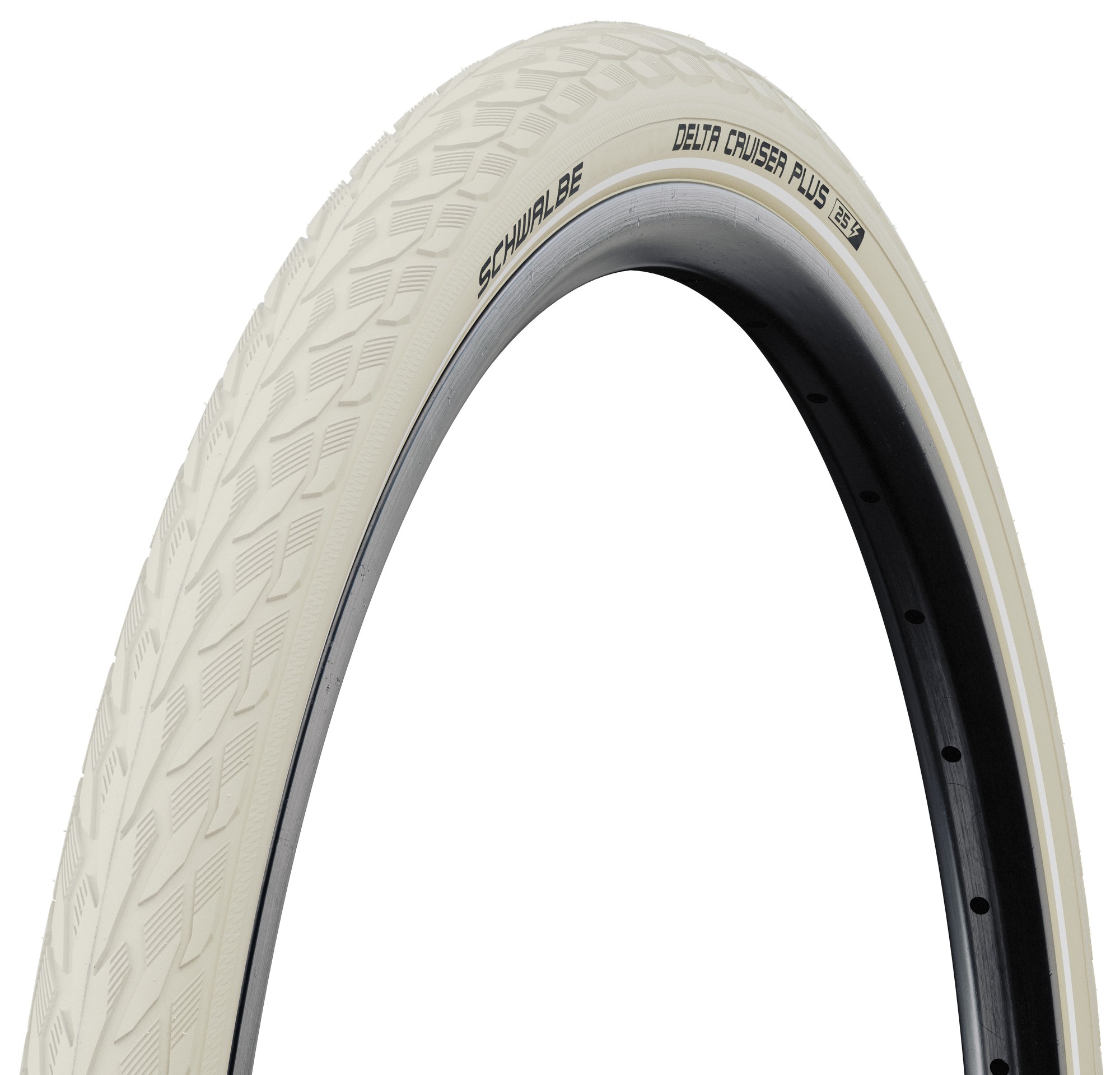 The classic center rib profile is versatile and offers pleasant rolling characteristics. Delta Cruiser Plus is equipped with 50 EPI carcass, K-Guard and reflective lines. With 3 mm Puncture Guard. Schwalbe Protection level 5. A recommendation for E-Bikes up to 25 Km/h