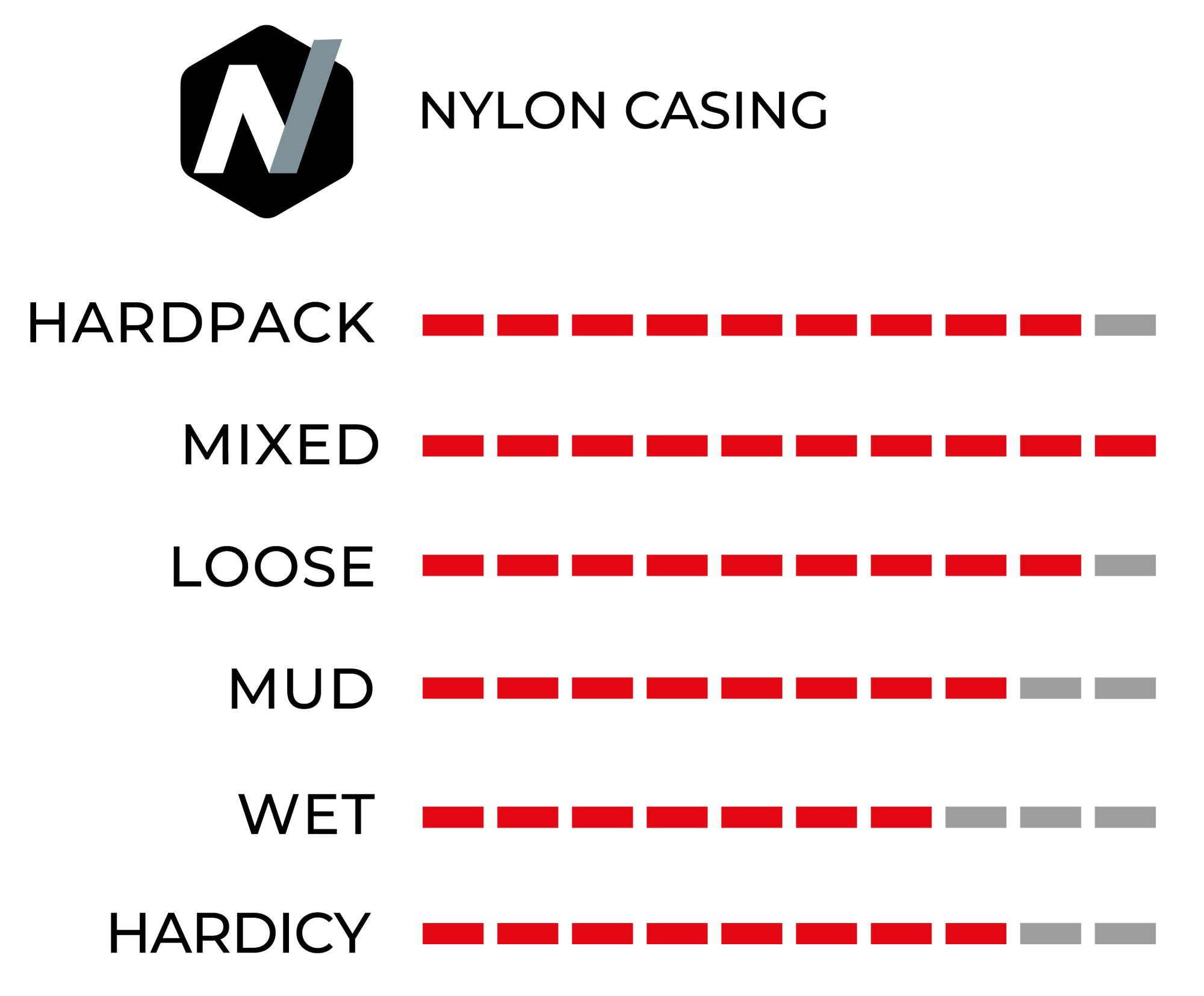 - Medium spaced knobs for a range of terrain and conditions
