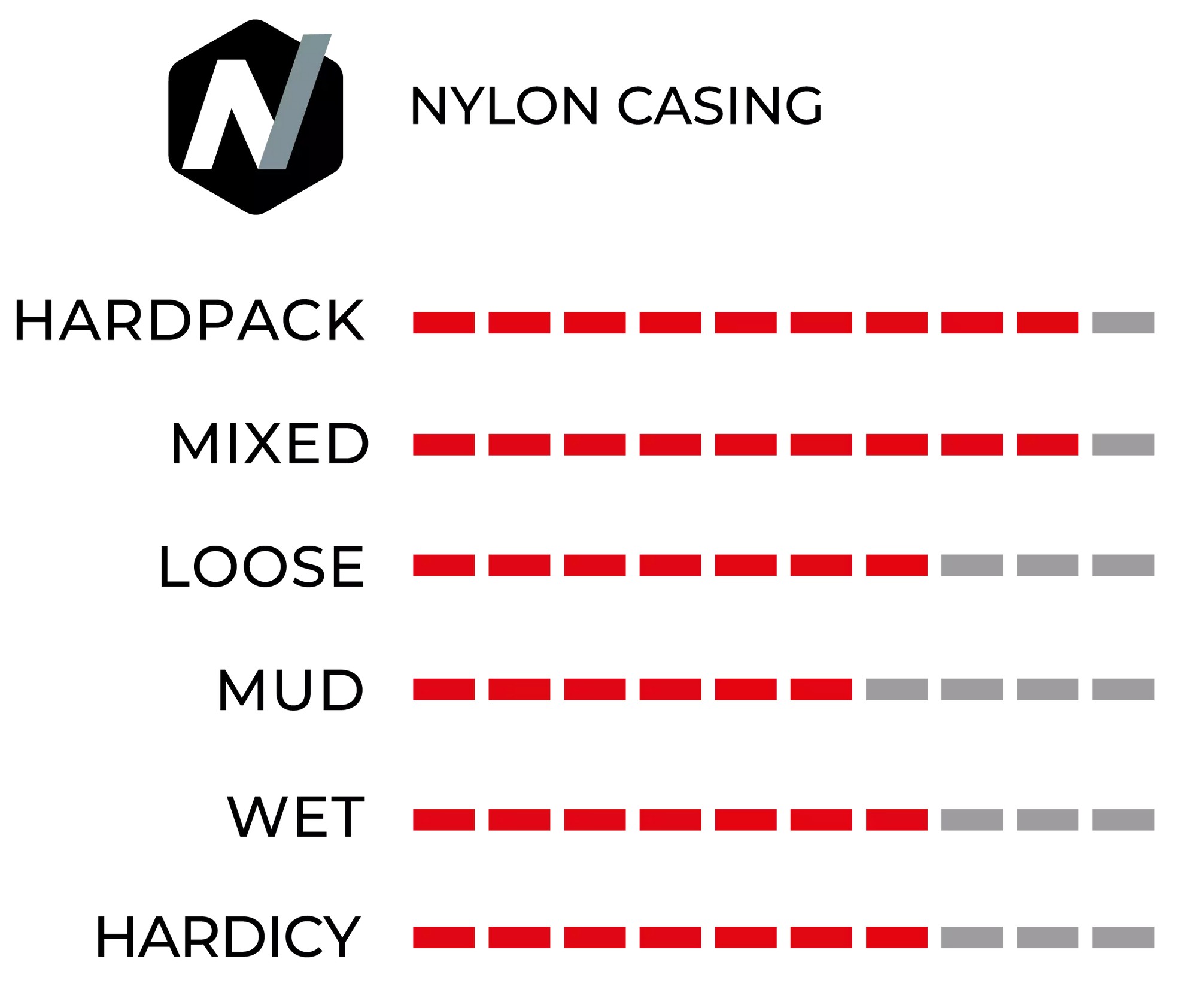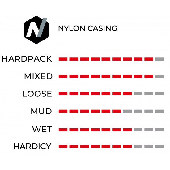 Nylon Casing: Nylon is a robust and durable artificial fiber traditionally used for strong tire casings. Nylon threads are less thin than cotton ones, so casings have a lower number of threads per inch. The advantages of nylon casings is that they are strong and durable, extending the wear life of the casing. However, because it is an artificial fiber, it is not as supple (soft/flexible) as cotton.