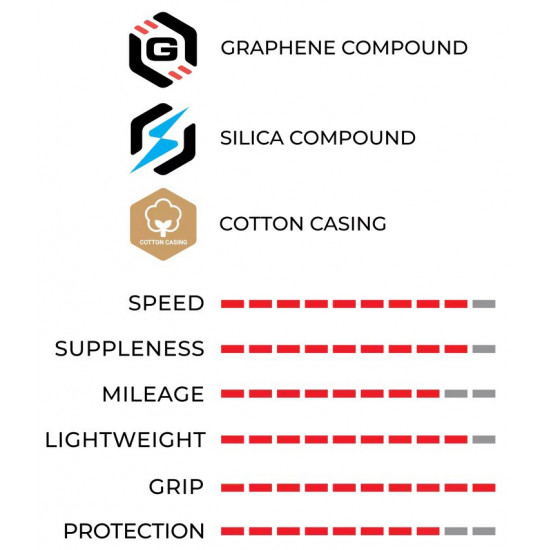 RACE FORMULATION GRAPHENE + SILICA The Race Formulation powered by Graphene + Silica is a high-performance compound mix developed for pro-level racing. It delivers an optimal balance of speed and grip, offering maximum efficiency in straight-line performance with confident handling in corners.