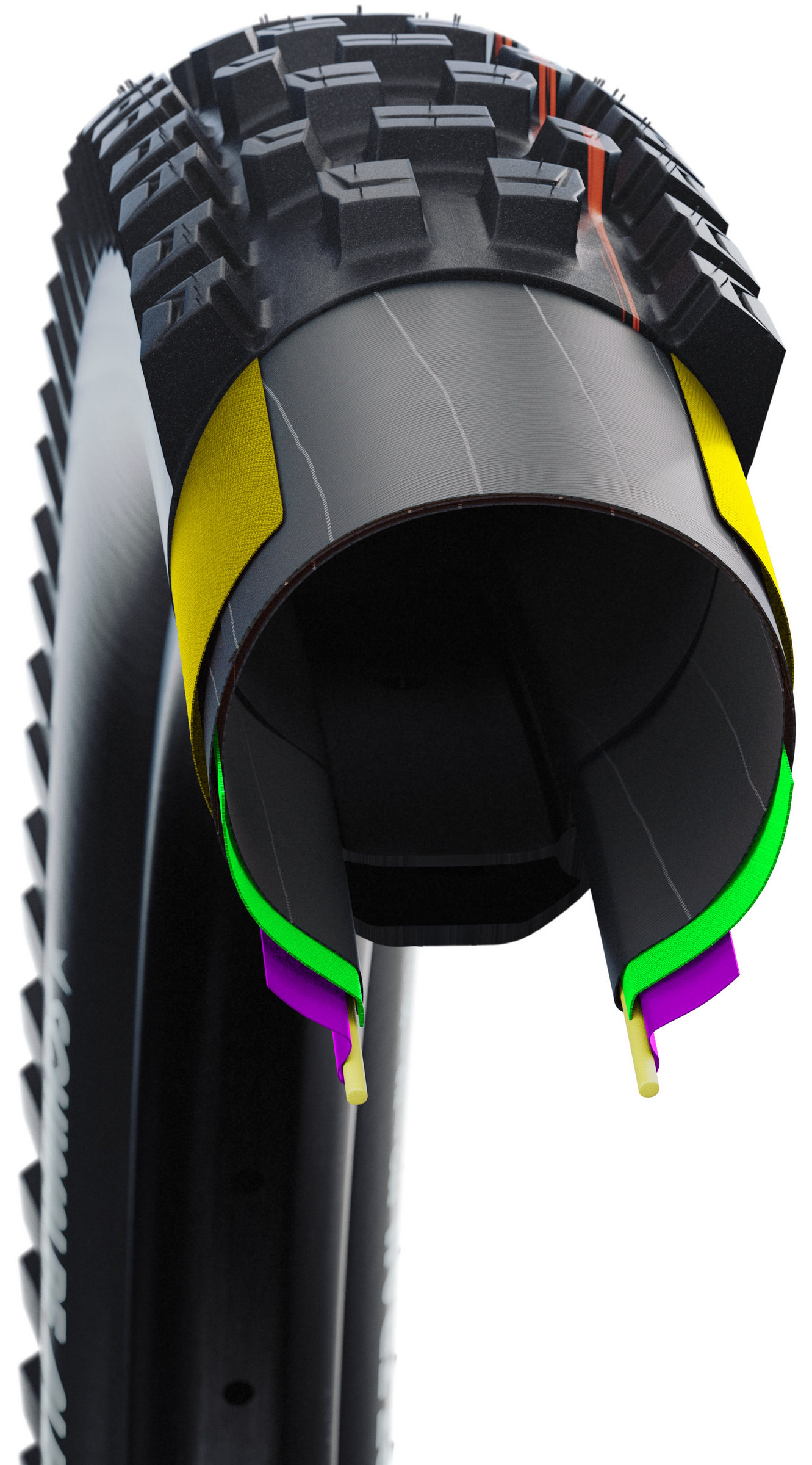 Schwalbe is turning the MTB world on its head with its radial tires and the Albert is no exception. The basis for this is upgraded design of the carcass compared to previous versions. The carcass threads, which run diagonally across the tire at an angle of 45 degrees in conventional bicycle tires, are arranged at a much more obtuse angle in the radial tires. This technology opens up completely new dimensions in the function of bicycle tires. The Schwalbe Albert guarantees safety and control in all situations.
