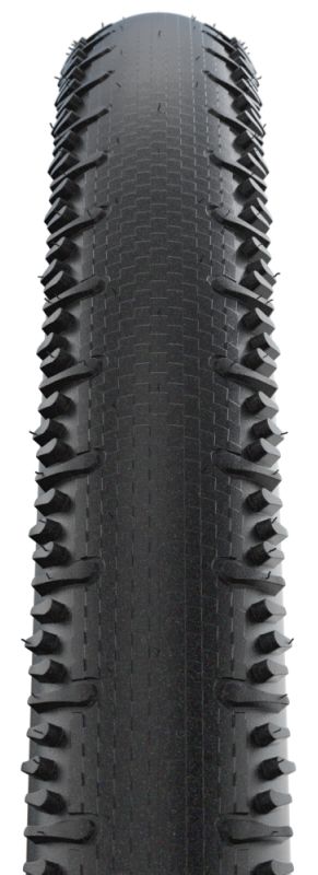 Compared to the G-ONE R, the RS has 20% less rolling resistance - for maximum speed, Schwalbe's developers have opted for a semi-slick version. The inspiration for the matching grip came from the cross tire X ONE Speed - so the slightly angled side blocks can be found on the tire, which provide maximum grip or braking performance depending on the rolling direction.