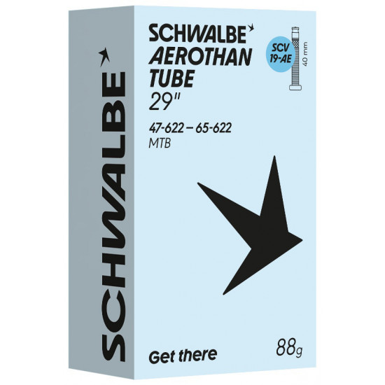 Schwalbe Aerothan Tube with Aluminium Valve Stem – light, stable and sustainable. Schwalbe Aerothan Tube with a robust aluminium valve stem for greater stability and top performance. The tube combines low weight with high puncture protection and actively contributes to the circular economy.