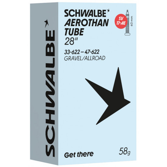 Schwalbe Aerothan Tube with Aluminium Valve Stem – light, stable and sustainable. Schwalbe Aerothan Tube with a robust aluminium valve stem for greater stability and top performance. The tube combines low weight with high puncture protection and actively contributes to the circular economy.