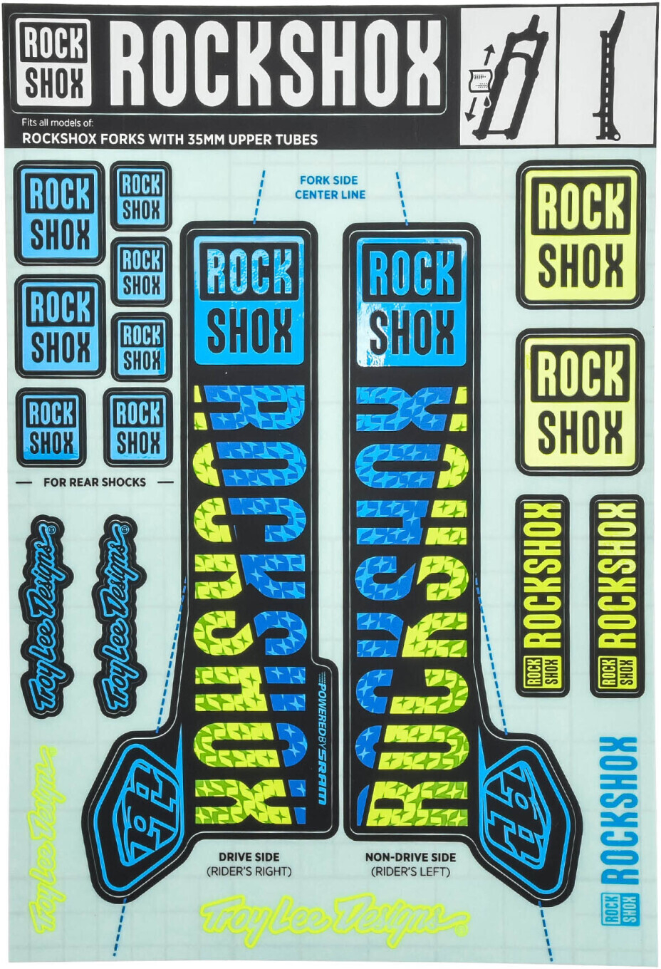 Joustohaarukan korjaussarja Rockshox decal sticker 35mm Troy Lee Designs blue-yellow