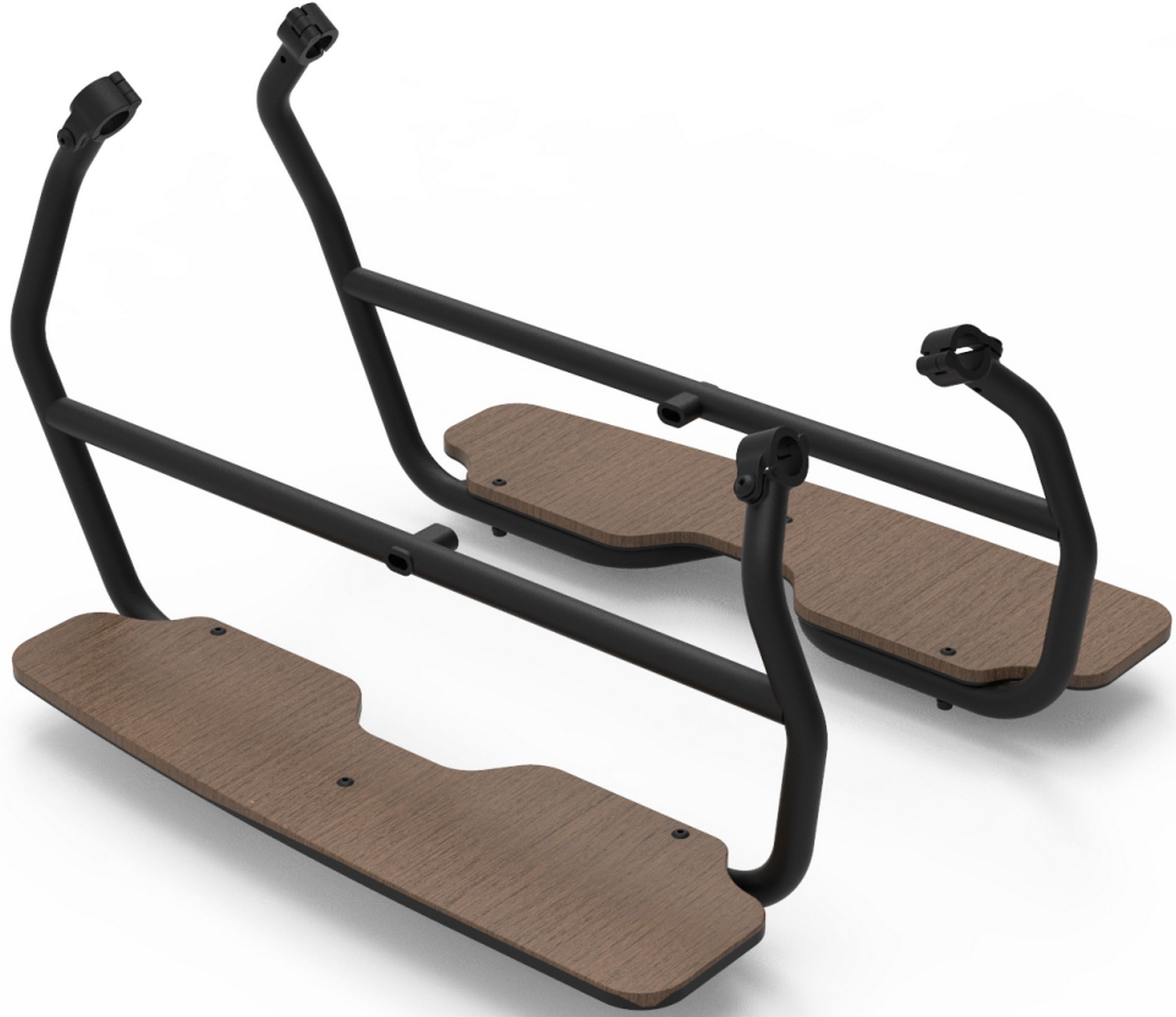 Designed especially for the cube longtail hybrid, the stepping board offers small feet a safe place to rest when riding on the long luggage carrier. The stepping boards are constructed from wooden boards made in germany and the frame is aluminium. Also suitable for fixing and transporting parcels safely with a lower centre of gravity.