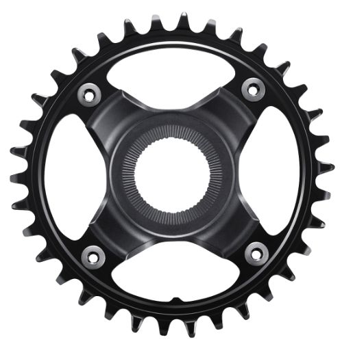 SHIMANO's lightweight and modern-looking SM-CRE80-12-B chainring features SHIMANO DYNAMIC CHAIN ENGAGEMENT+ for smoother pedaling and better chain retention over bumpy terrain.