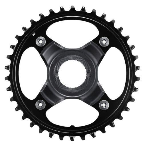 SHIMANO's lightweight and modern-looking SM-CRE80-12-B chainring features SHIMANO DYNAMIC CHAIN ENGAGEMENT+ for smoother pedaling and better chain retention over bumpy terrain.