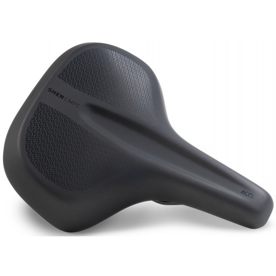 The ACID SHEN CMPT saddle is specifically designed for city use, offering high comfort and soft padding. The centrally placed ergo-relief channel and the ergonomically shaped saddle shell reduce pressure on the soft tissue and promote an ergonomic seating position. The durable PU cover ensures a comfortable seating experience, while the ergonomic shape provides maximum leg freedom and allows for a smooth pedalling motion. The saddle is optimised for an upright seating position.