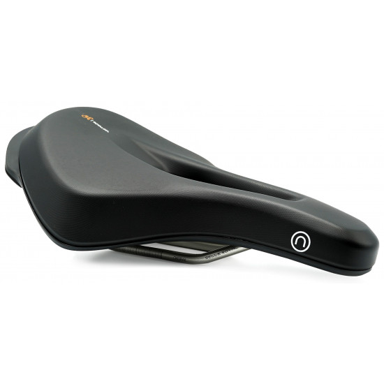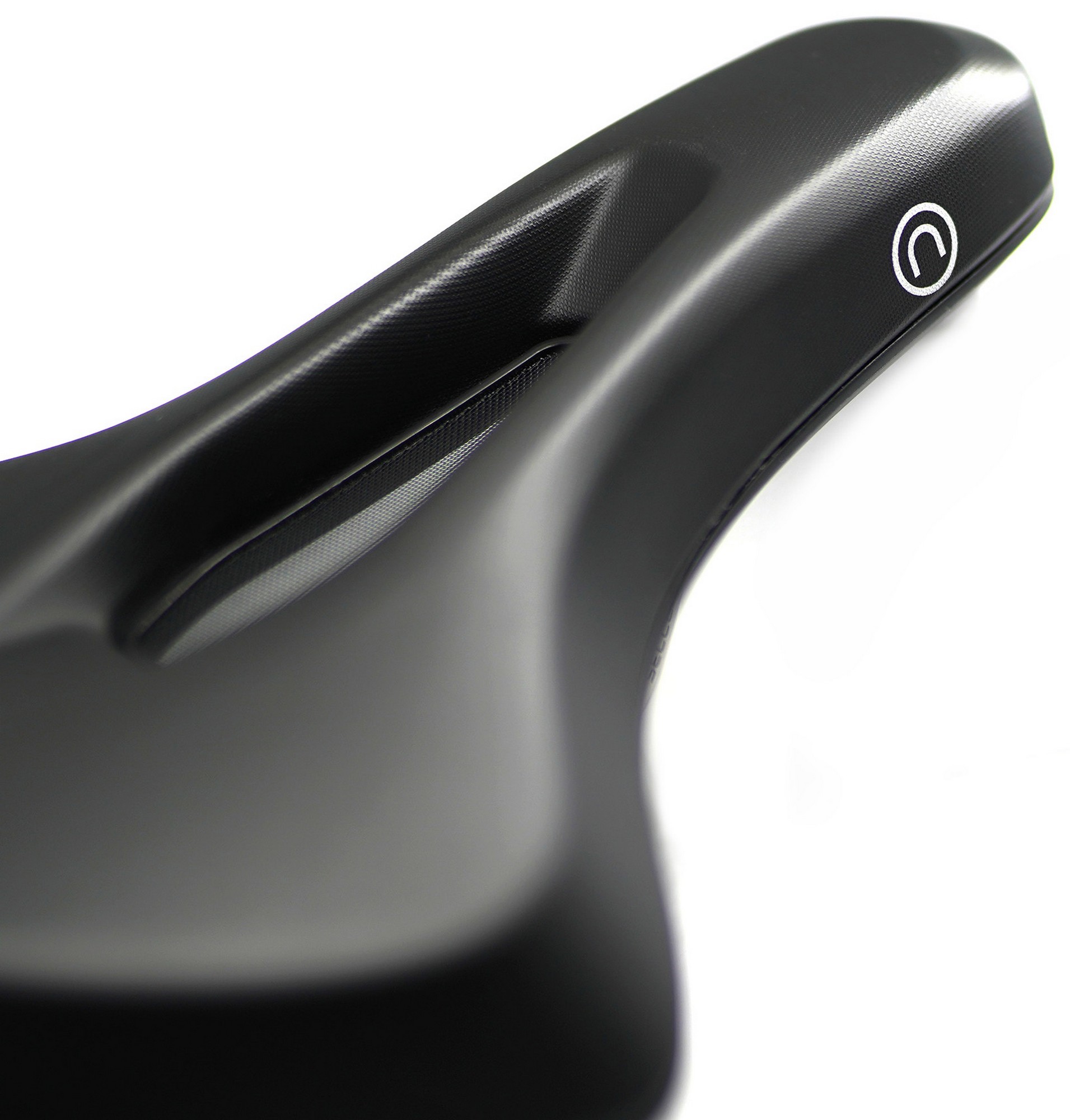 E-FIT DESIGN An innovative wave-shaped design to help you immediately find the correct position on your e-bike, its elevated rear section will prevent you from sliding backward to ensure maximum comfort for your back, while the uniquely flexible saddle sides add stability and facilitate pedalling.