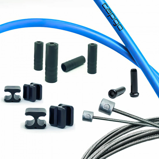 - Includes: 1x capgo BL 3000 mm Shift Cable Housing 4 mm, 2x capgo BL 2200 mm Shift Inner Cable 1.1 mm slick stainless steel Shimano, 4x capgo BL Sealed End Cap for 4 mm Shift Housing Black Plastic, 2x capgo OL Cable Tips for 1.00-1.80 mm Wires Black Alloy, 4x capgo OL Clip Connector for 4 and 5mm Housing Black